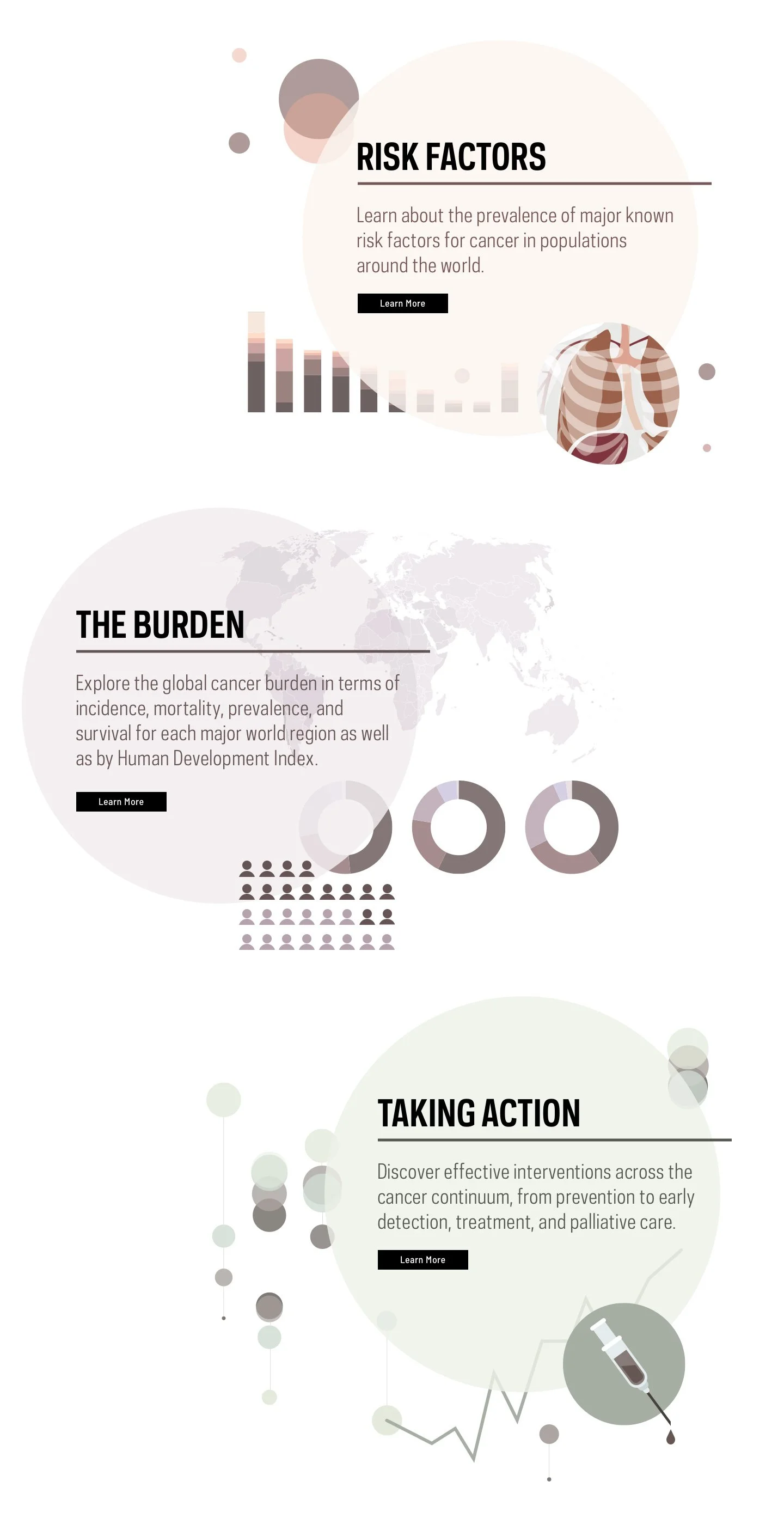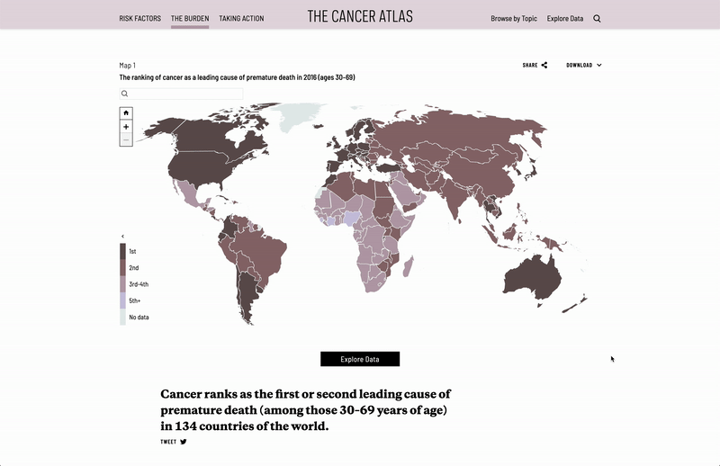 How do we surface the stories in data and make a topic such as cancer, accessible? How do we translate a data-heavy book into an interactive and engaging website that is both functional and tells the story of trends across data?